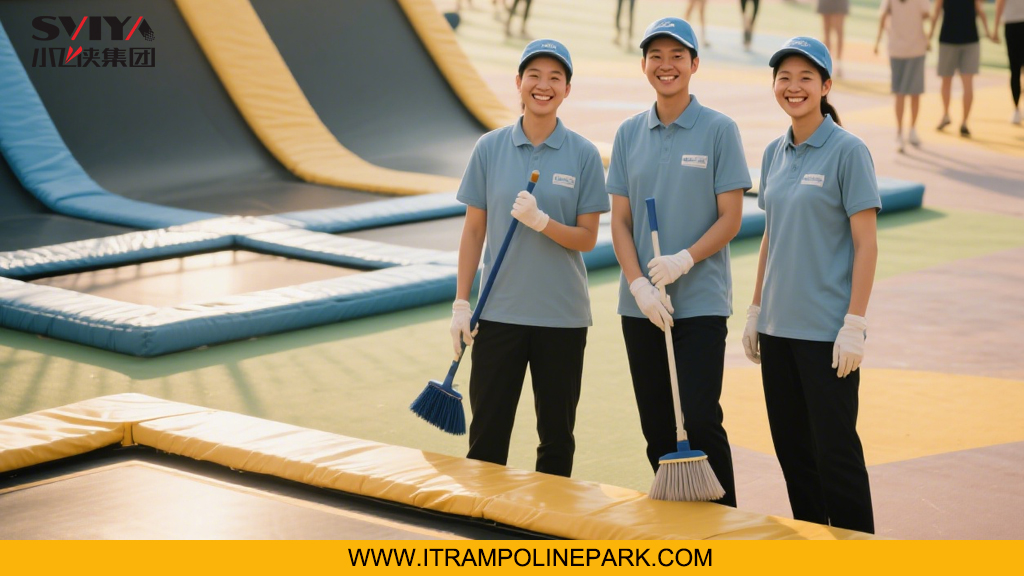 Inspect all padding thoroughly to guarantee it’s firmly attached to frames and covers all springs, frame edges, and potential impact areas, which prevent players got hurt by the metal parts of the trampoline. Check safety nets daily for tears, holes, or loose connections that could jeopardize their ability to prevent falls or collisions between participants.