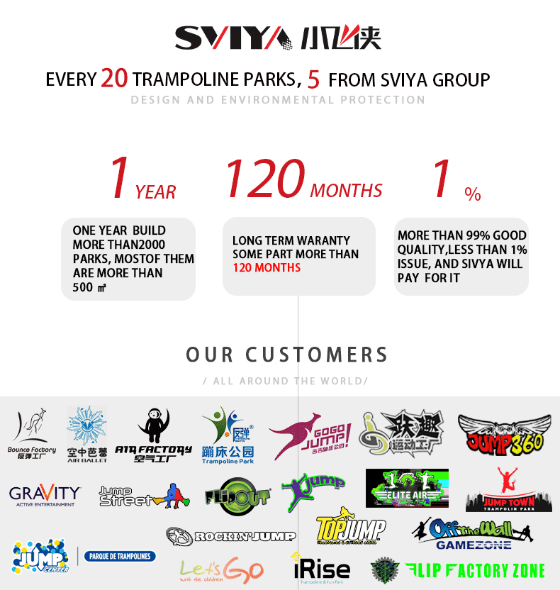 - Leading Time: 3-30 days depends on the size of the trampoline park