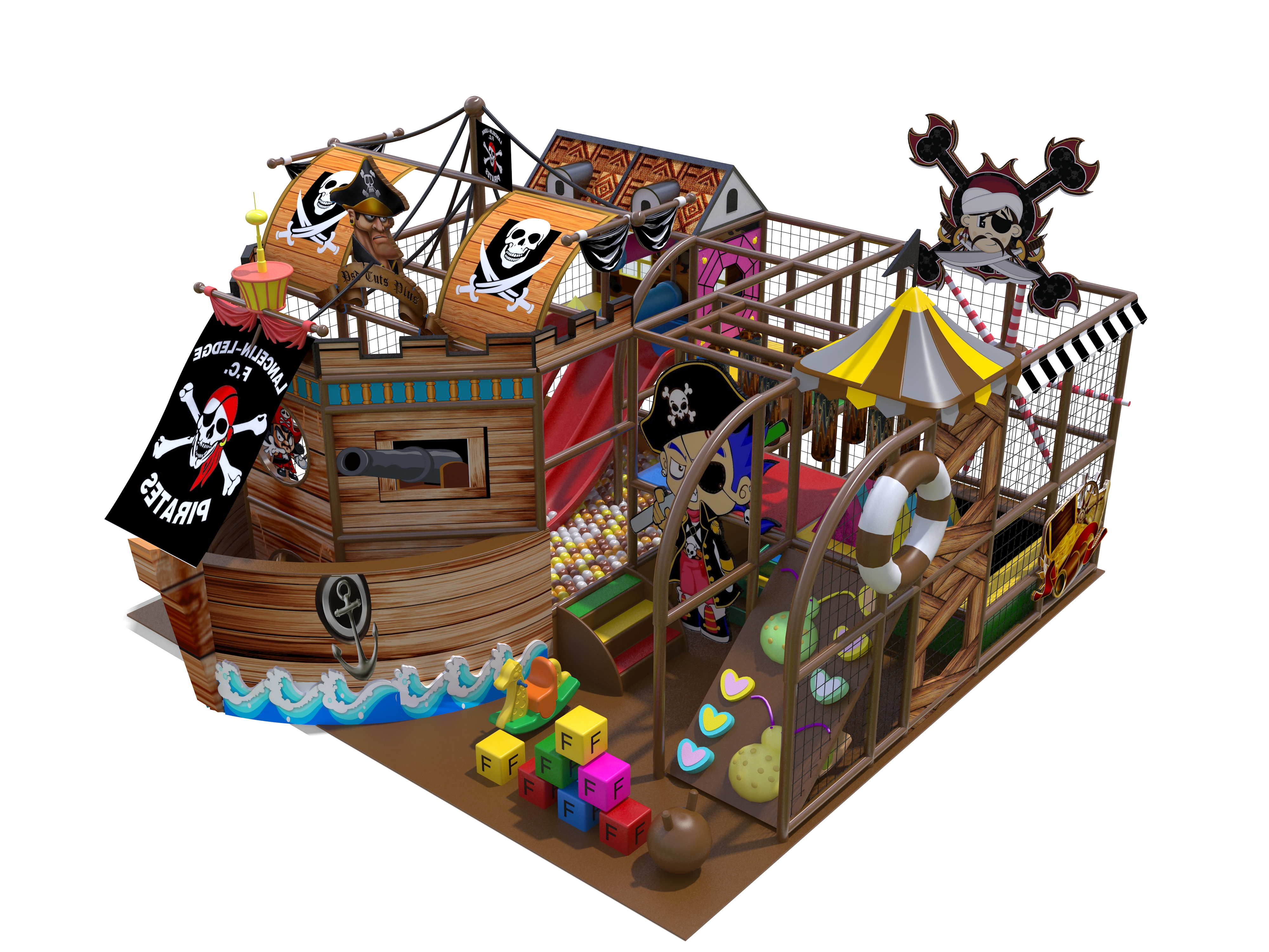 A pirate-style playground is a recreational area designed to capture the adventurous and imaginative spirit of pirates and pirate lore. It provides children with an opportunity to step into the world of swashbuckling pirates and engage in exciting play activities inspired by the high seas and treasure hunts.